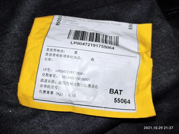 Страна: LV Доставка: Cainiao Super Economy for Special Goods 13.11.2021