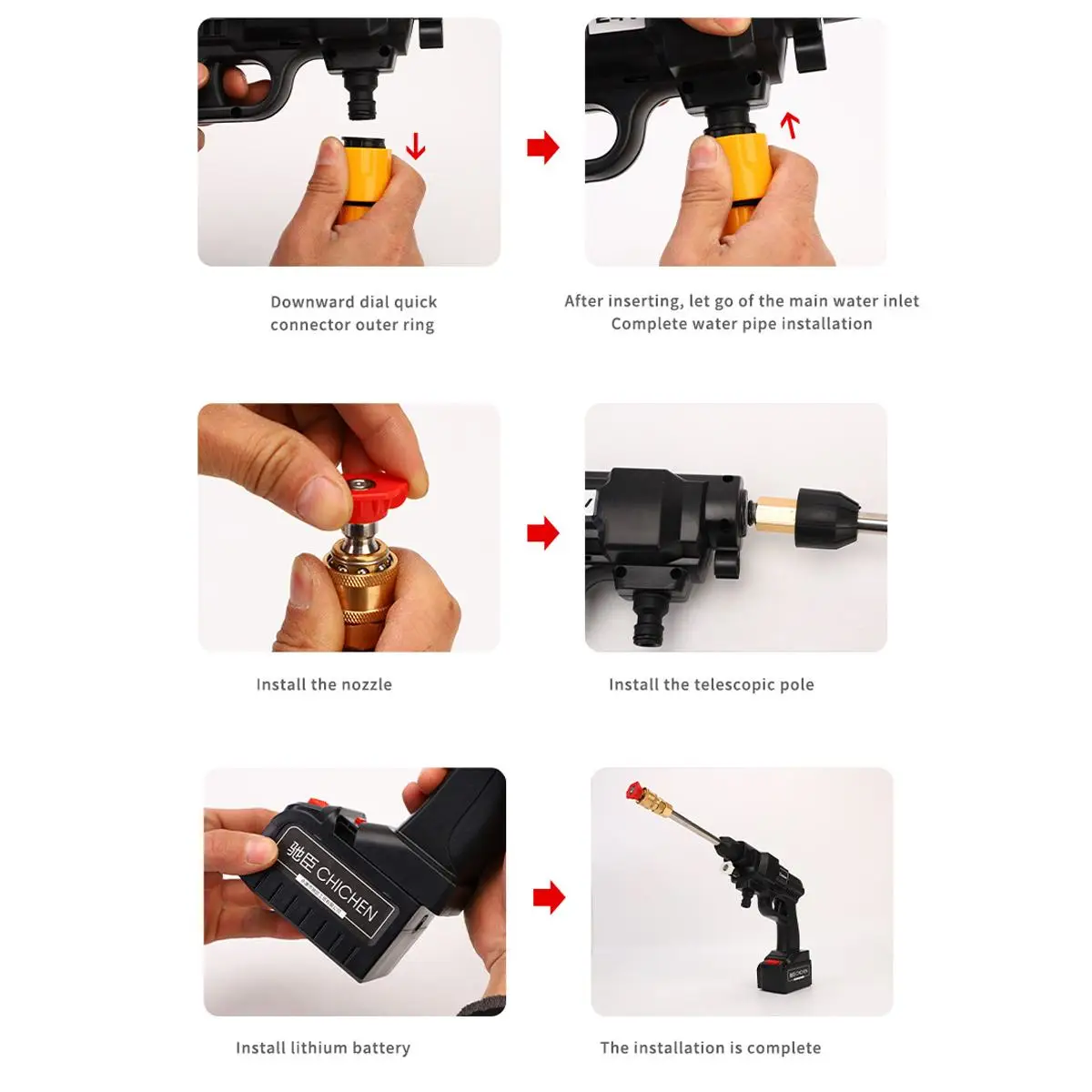 Q и AВ1: почему машинная стиральная машина не запускается после включения выключателяA1: возможно, аккумулятор разрядился, пожалуйста, заряжайте егоВ2: почему нет воды после начала мытья автомобиля?A2: Убедитесь, что водопровод Согнут и дренаж не является гладким; Нажмите на стиральную машину более 10 секунд, а затем подождите, пока вода будет всасываться в стиральную машину автомобиляВ3: застенчивый-это давление воды настолько маленькоеA3: давление воды размер сопла имеет определенные отношения с соплом, вы можете выбрать, чтобы заменить сопло; При использовании батареи, давление воды будет очень низким, пожалуйста, заряжайте.