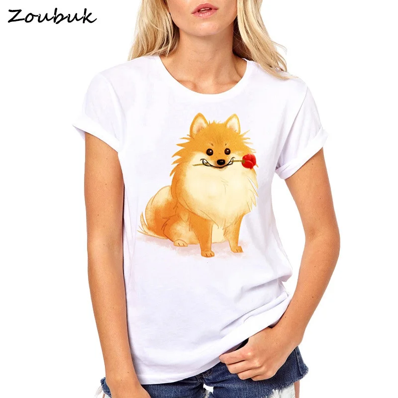 Футболка женская с принтом померанского шпиона, модный белый топ с круглым вырезом и коротким рукавом, с принтом собаки, на лето