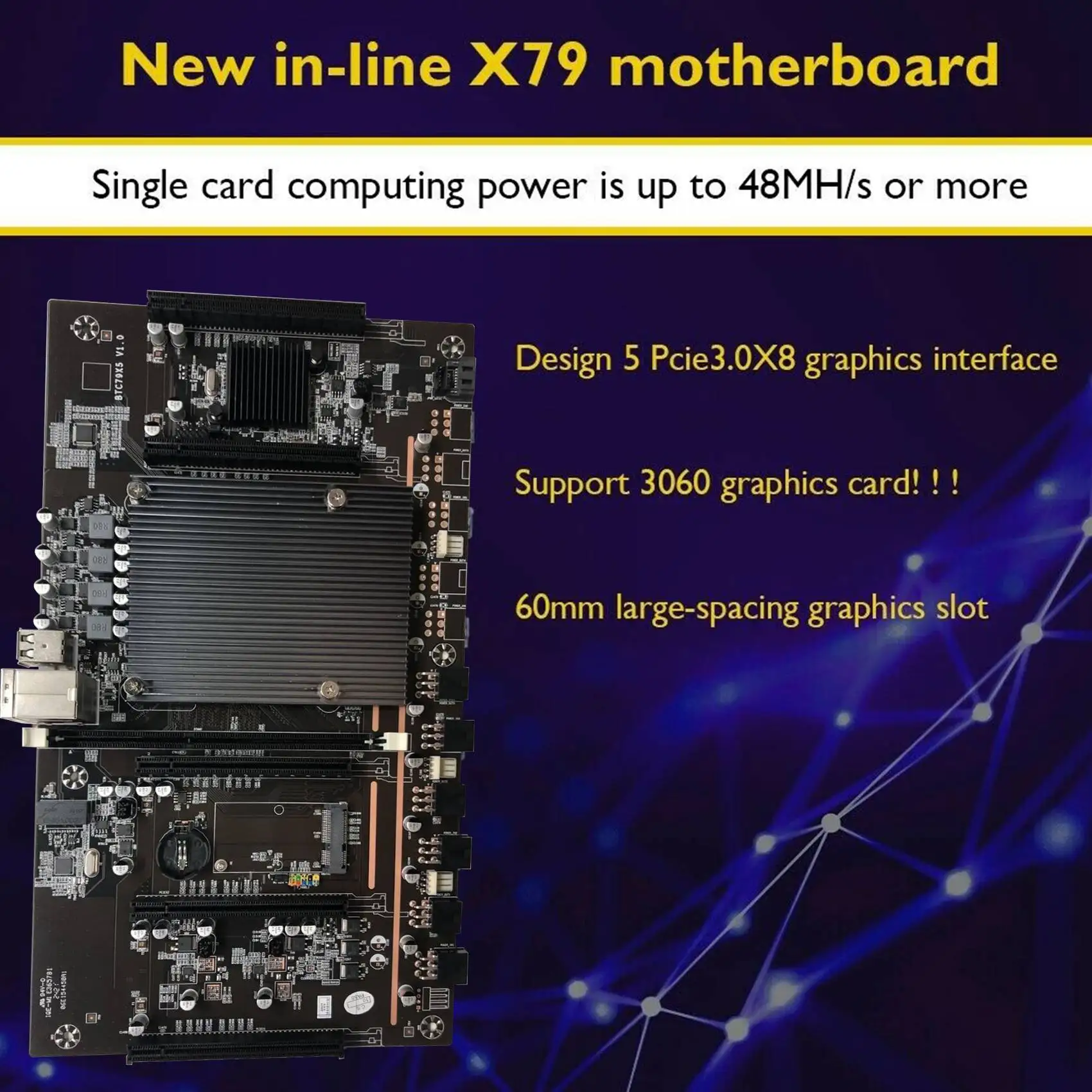 Материнская плата для майнинга BTC BTC79X5 V1.0 LGA 2011 DDR3, поддержка s 32 ГБ, 60 мм, поддержка RTX3060, видеокарта для майнинга BTC