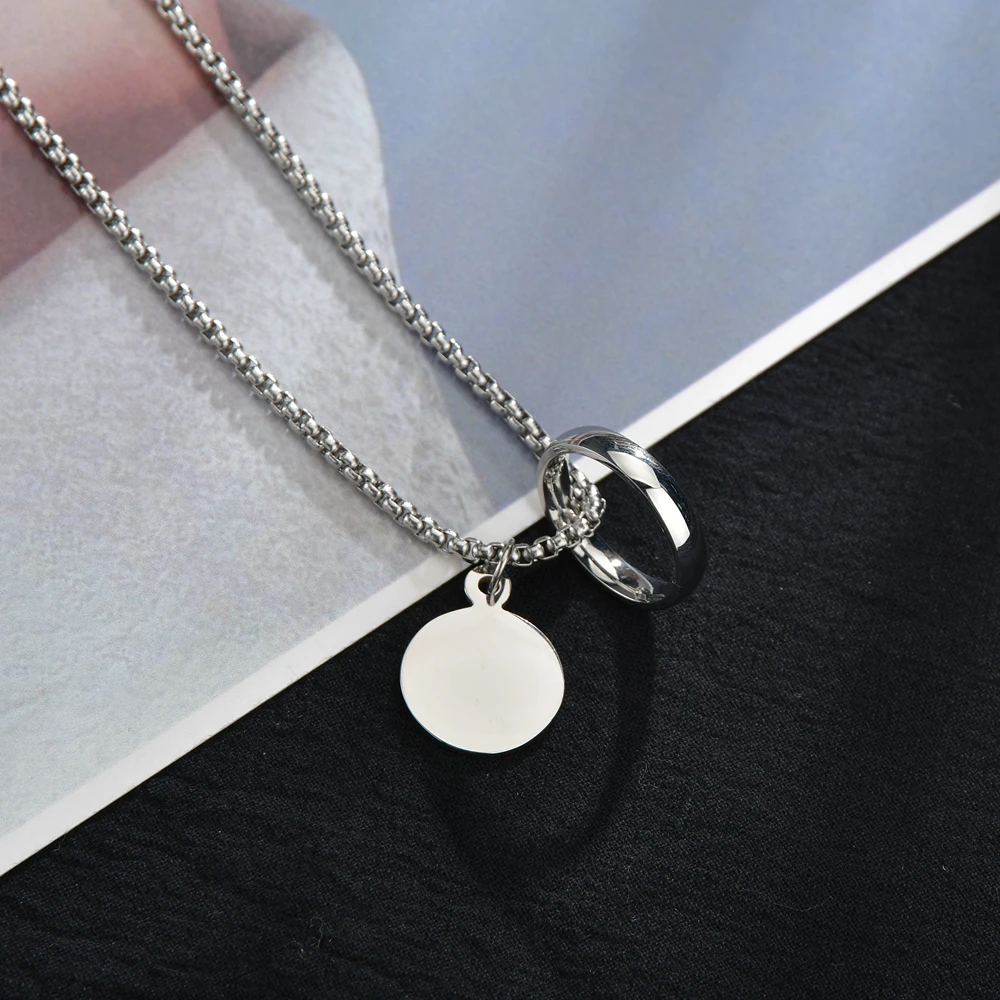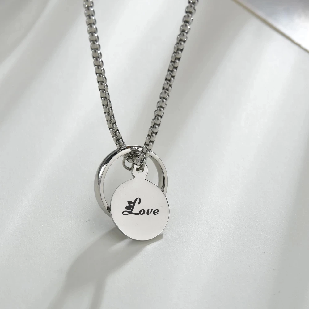 Мы будем выгравировать слова на ожерелье. Если вы хотите выгравировать, пожалуйста, свяжитесь с нами и уточните слова.Мы делаем это как обычное.Индивидуальная гравировка имени кольцо из нержавеющей стали ожерелья Круглый Кулон цепочка ожерелье для женщин ювелирные изделия подарок на день рождения