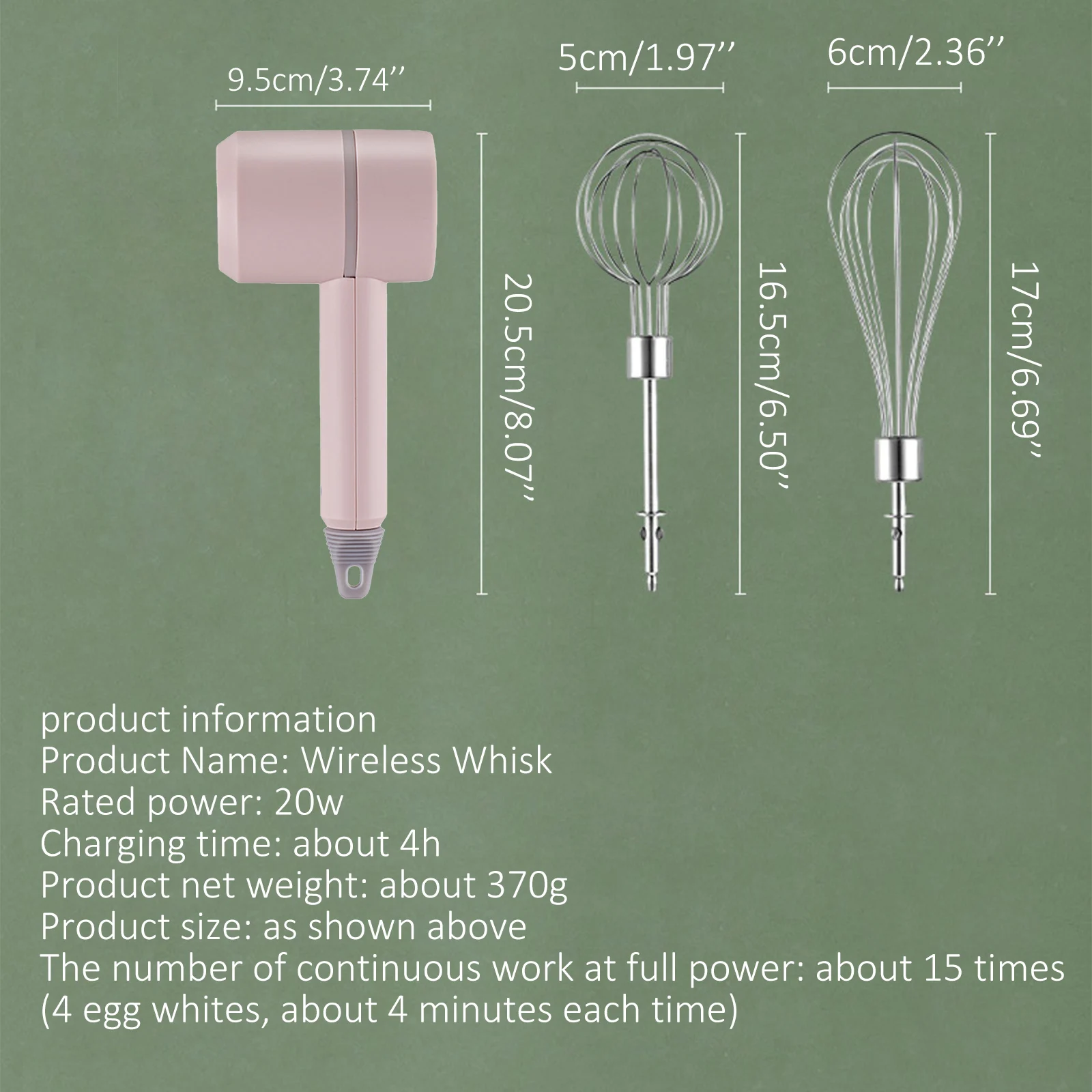 Взбивалка для яиц Размеры: 9,5*6,4*20,5 см/3,73*2,52*8,06 дюйма (Д * Ш * В)