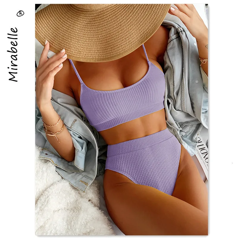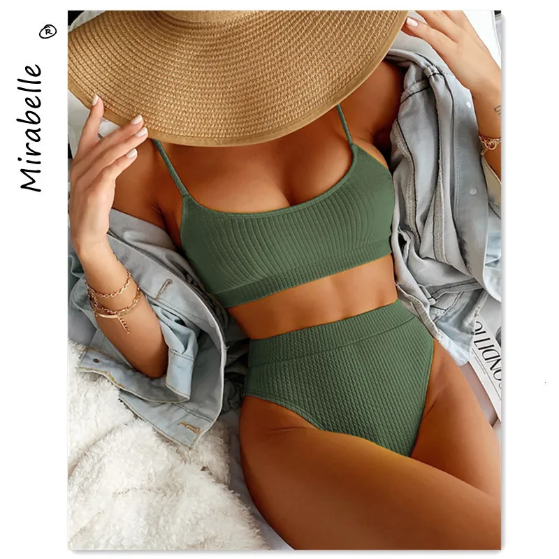 Женский купальник Mirabelle, бикини с высокой талией, однотонный купальник с пуш-ап, бикини в рубчик, пляжная одежда для лета, 2021