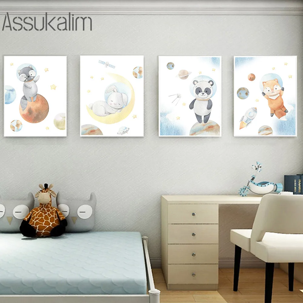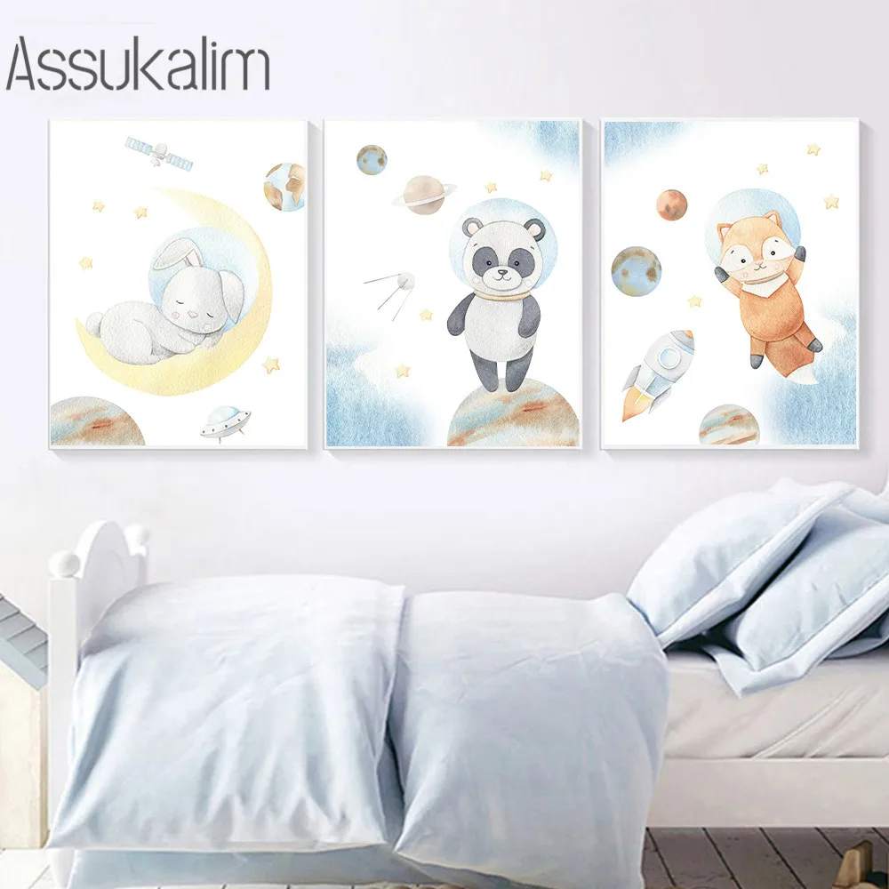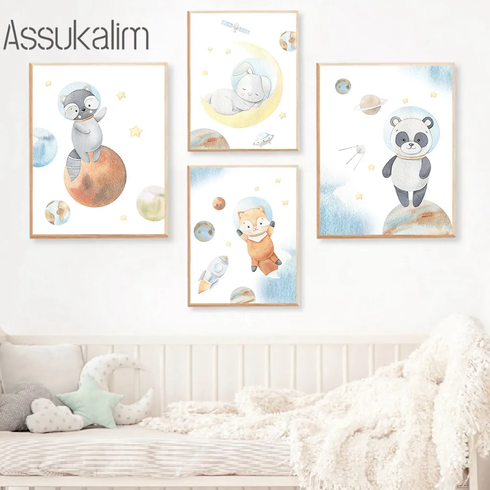 Космическая Картина на холсте плакат панда лиса ракета Художественная печать Луна настенные плакаты скандинавские настенные картины для украшения детской спальни
