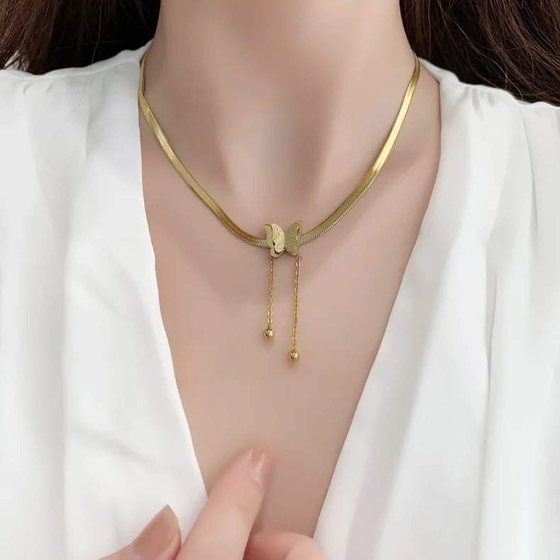 2021 в Корейском стиле; Новая стильная текстильная спортивная обувь с бабочкой кисточкой ожерелье Мода темперамент короткая цепочка на ключицы ожерелье для женщин ювелирные изделия