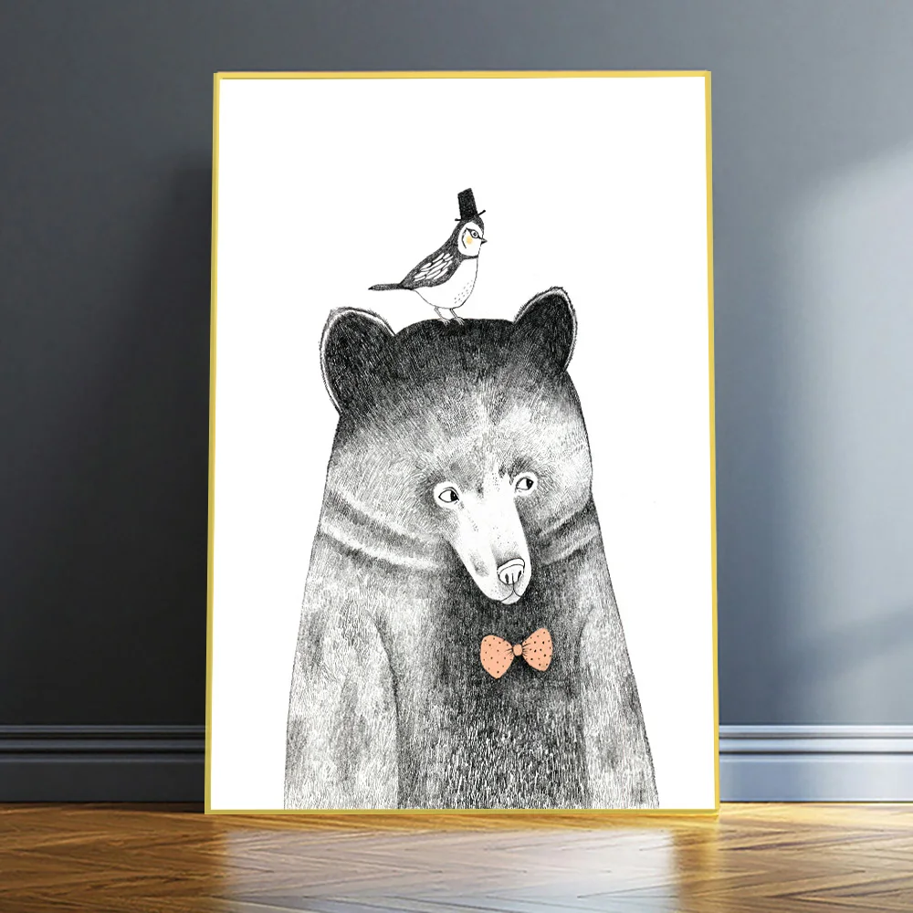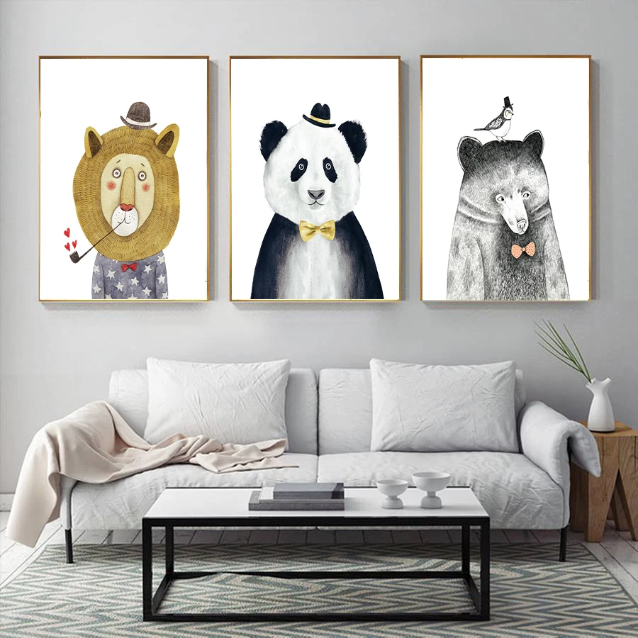 Милый мультяшный медведь Холст Картина панда аниме плакаты и принты Мультфильм Лев для мальчиков и девочек декор комнаты настенное искусство холст