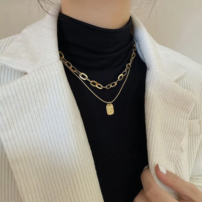 Винтажная Геометрическая цепочка многослойное ожерелье с подвеской ...