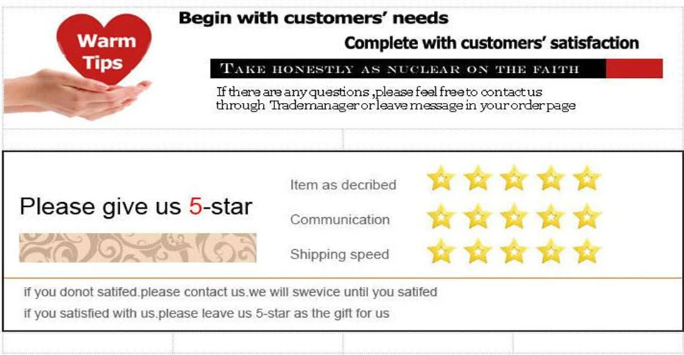 Уважаемый покупатель, если вы не удовлетворены нашим продуктом и обслуживанием, пожалуйста, свяжитесь с нами, прежде чем оставить отрицательный отзывы, тогда мы постараемся сделать все возможное, чтобы решить проблемы и сделать вас удовлетворенными. Это очень важно для нас и спасибо за понимание.