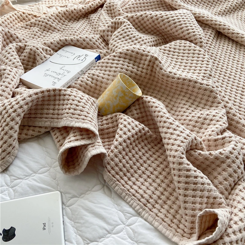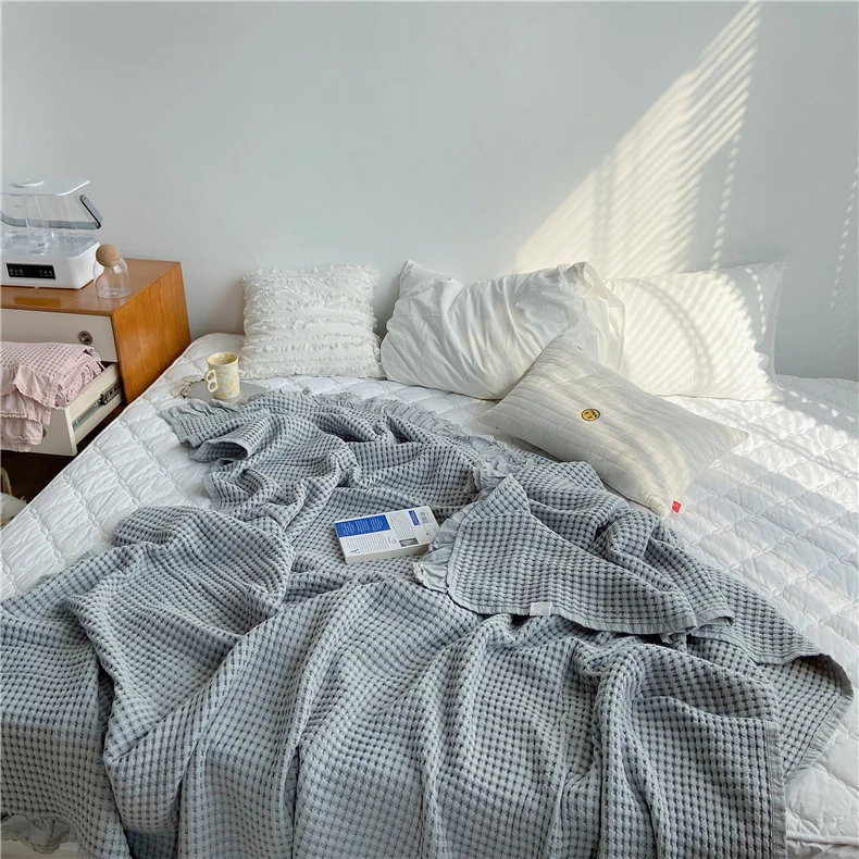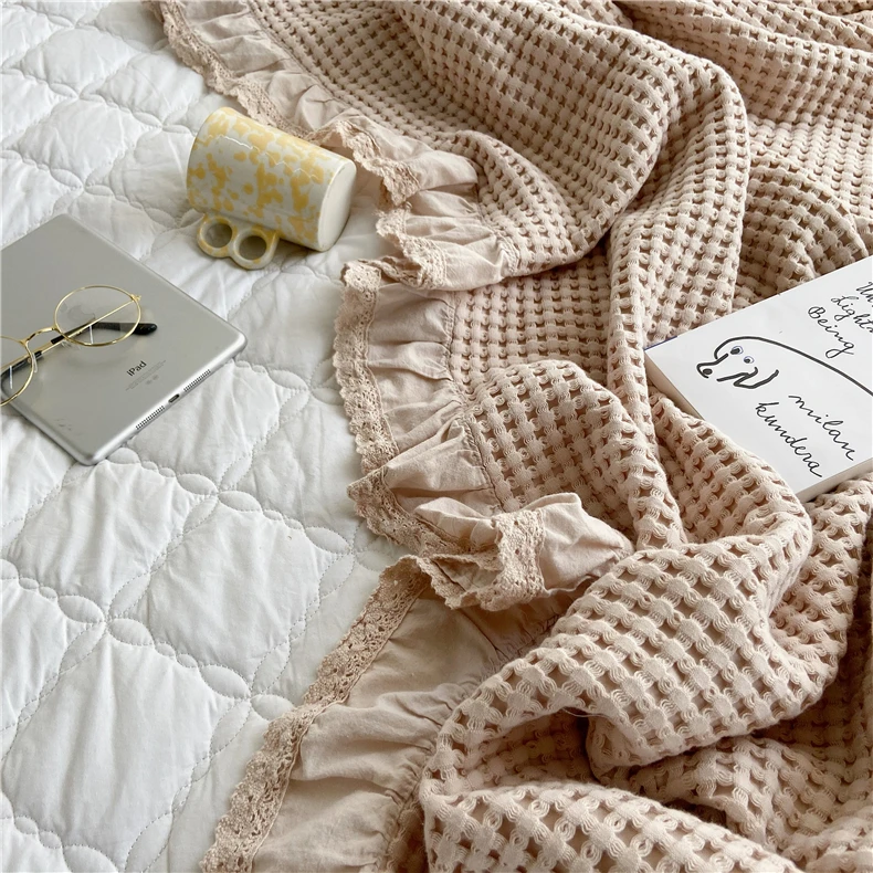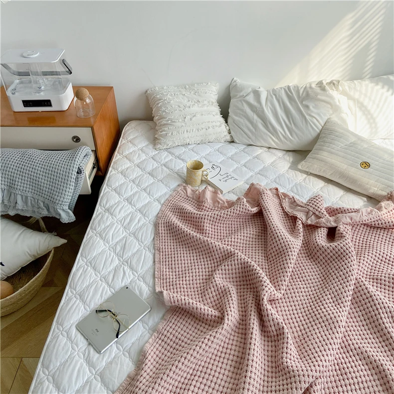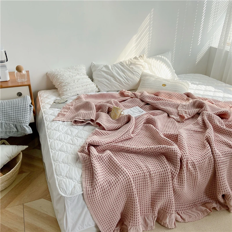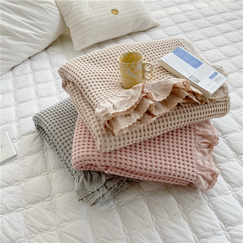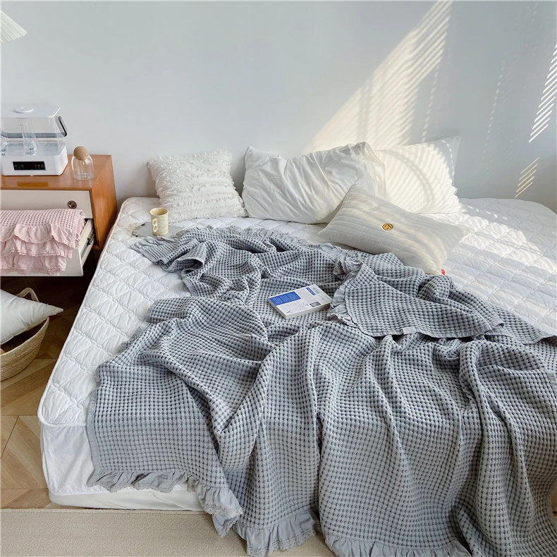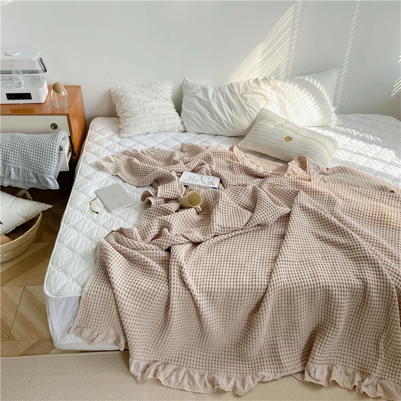 Муслиновая вафельная клетчатая кровать для дивана, кружевная накидка для дома и офиса, летнее двойное одеяло, тонкое льняное покрывало для детей