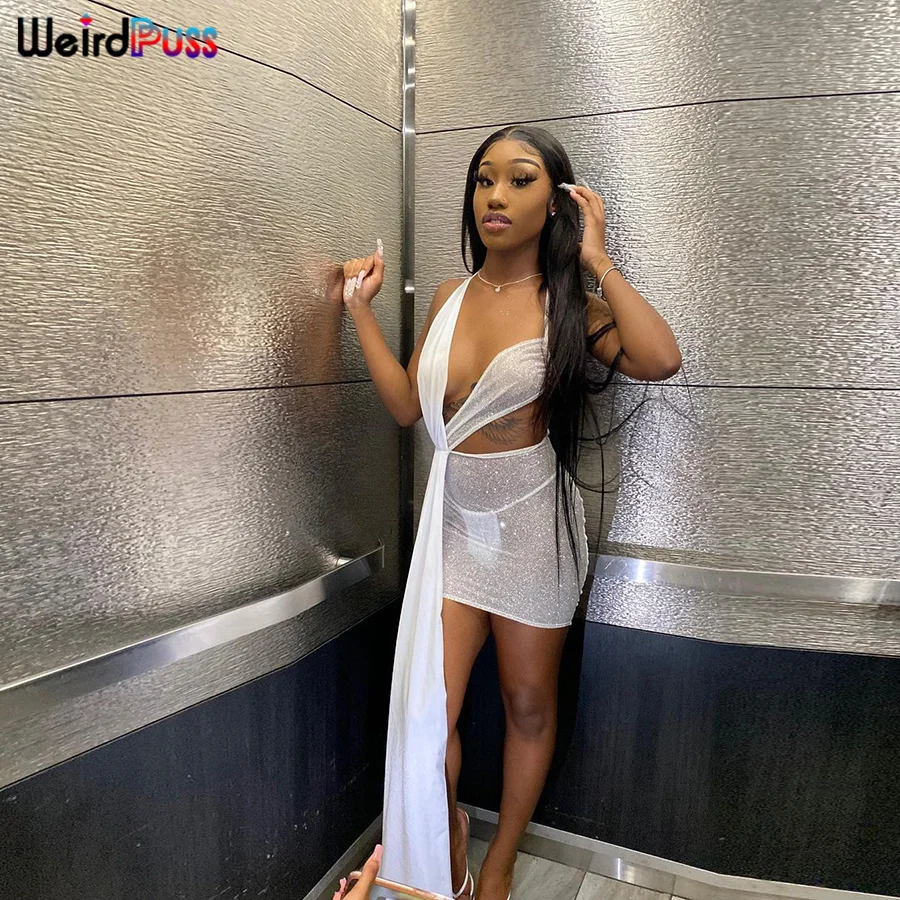 Женское вечернее платье с длинными кисточками, блестящее асимметричное Сетчатое платье без рукавов, с открытой спиной, для выпускного вечера, лето Свадебная, клубная одежда