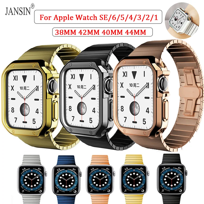 Ремешок из нержавеющей стали + чехол из ТПУ для apple watch SE65432...