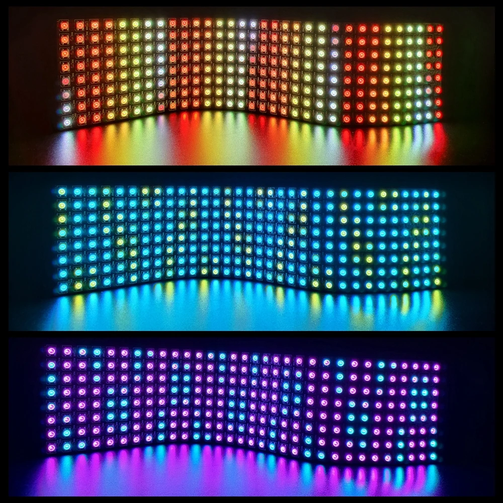 Светодиодный модуль WS2812, 8x8 16x16 8x32 пикселей, матричный экран RGB SMD5050, гибкий, сделай сам, праздничное освещение WS2812 IC, индивидуальный источник постоянного тока 5 В