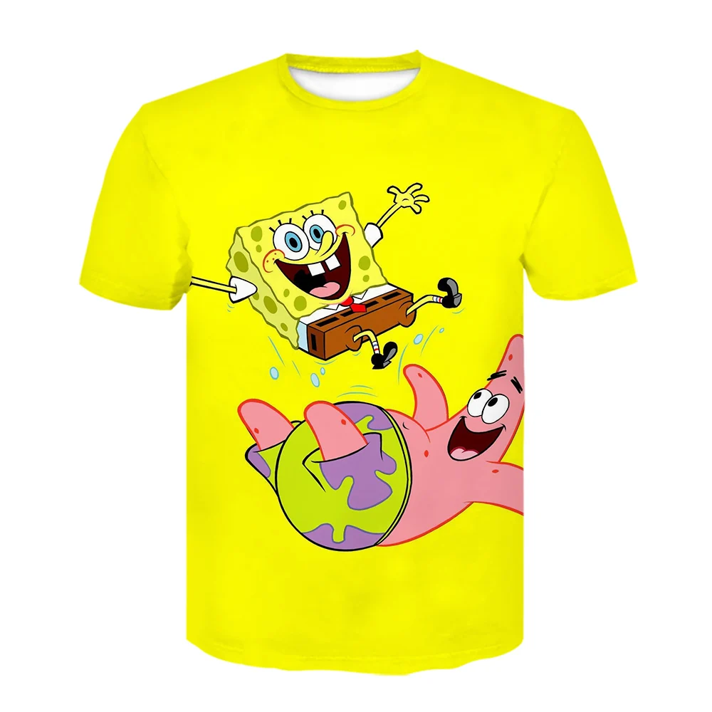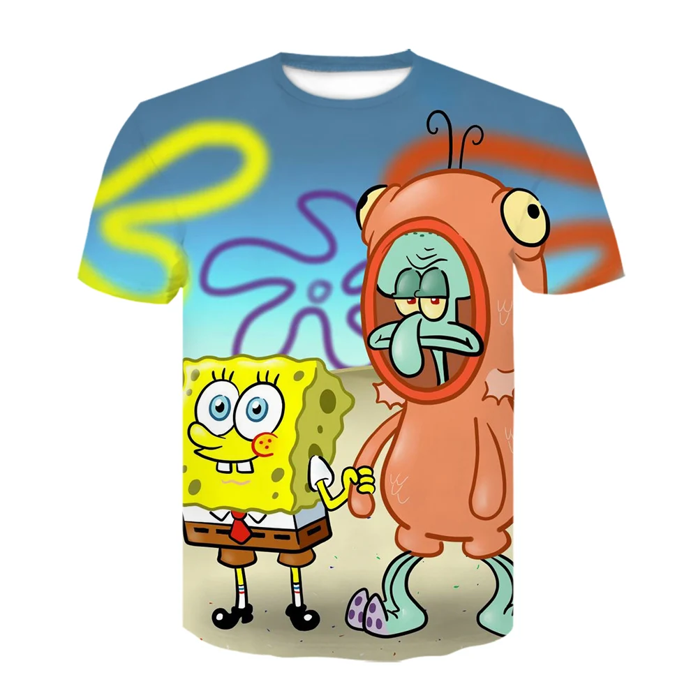 Новинка лета 2021, лидер продаж, футболка из полиэстера с 3D принтом в виде губки, с круглым вырезом, для мужчин и женщин, магазин с анимационной печатью