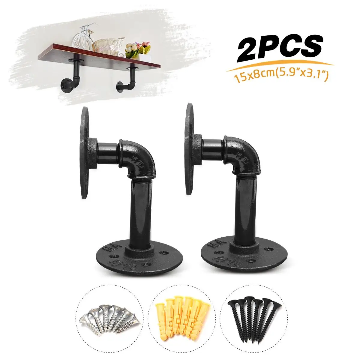 Кронштейны для полок, 2 шт., промышленный черный железный кронштейн для труб, настенная плавающая полка, подвесная настенная фурнитура, декор для стеллажей, оборудование для тяжелых условий эксплуатации