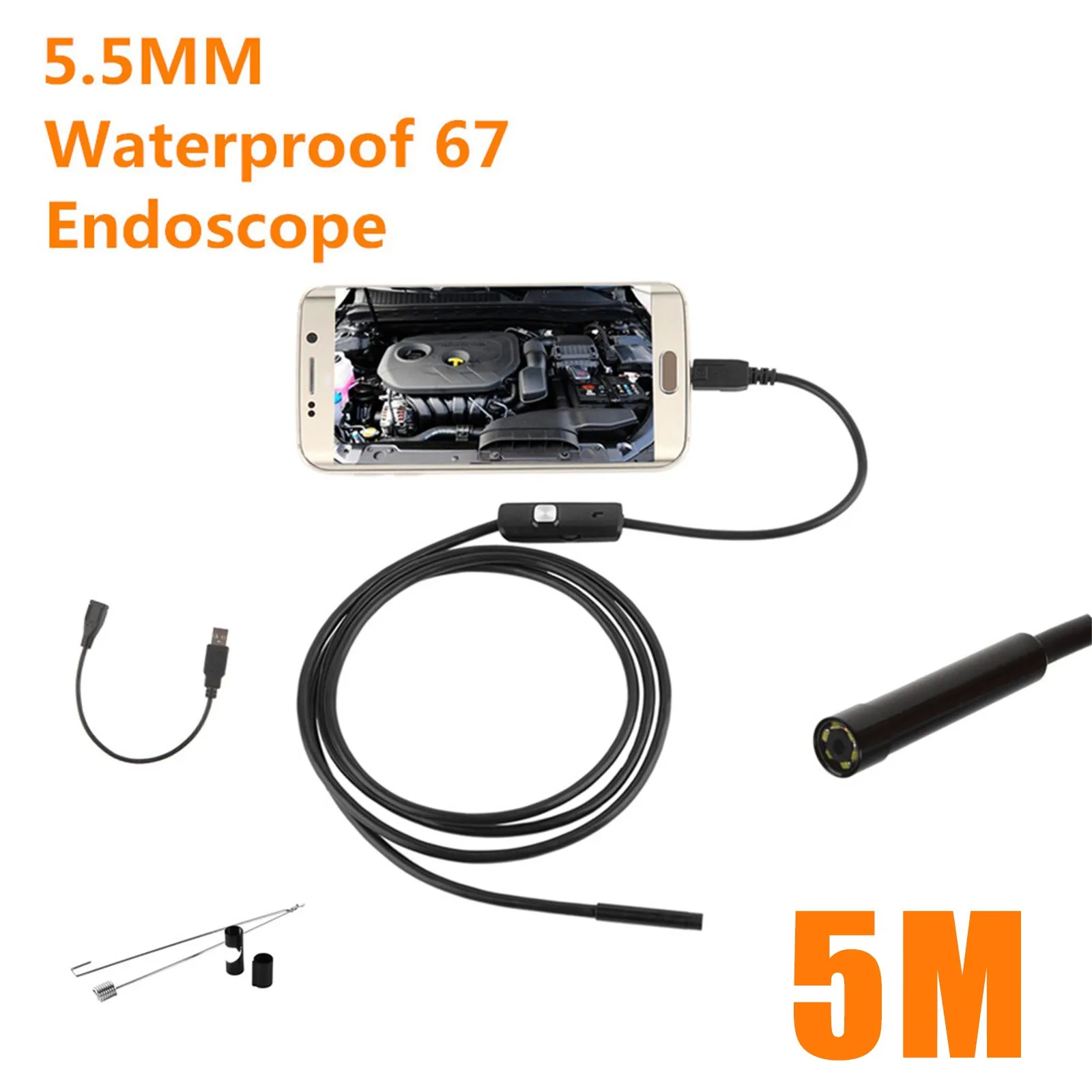 5,5 мм эндоскопическая Камера Гибкая IP67 водонепроницаемая камера-бороскоп для Android USB PC Notebook 6 светодиодов