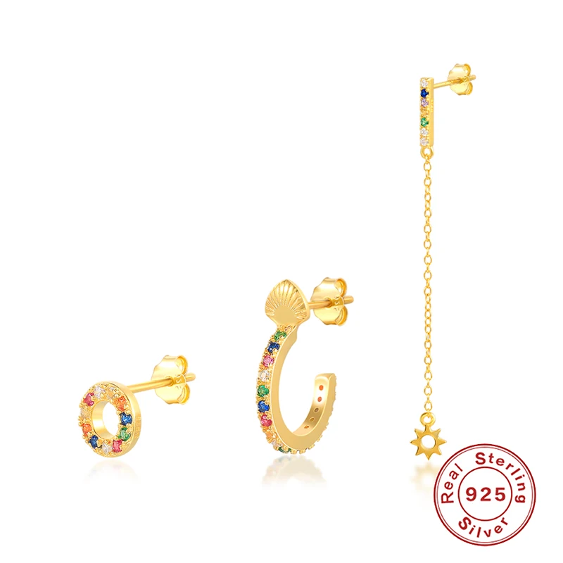 Автоклав 100% 925 стерлингового серебра Красочные Циркон маленькие серьги-гвоздики серёжки для женщин Пирсинг Серьга ювелирных изделий серьги Pendients плата 925