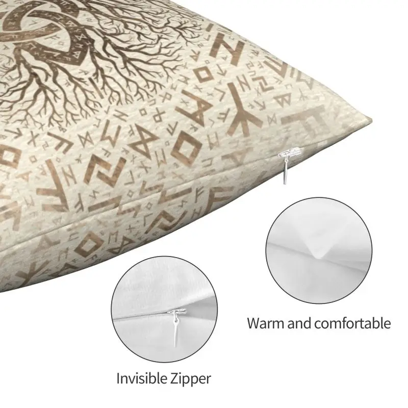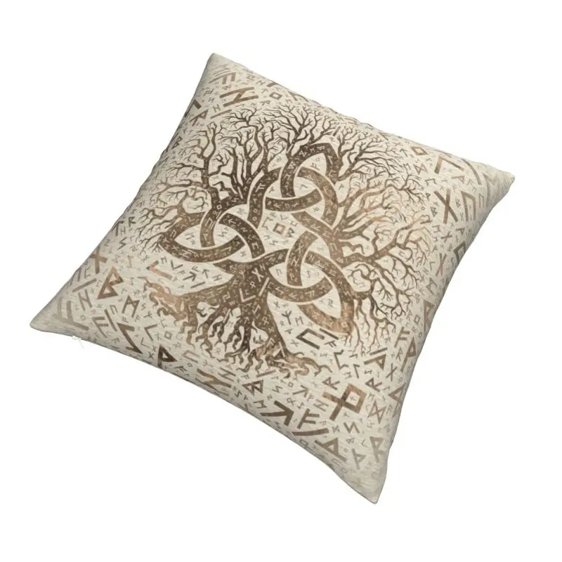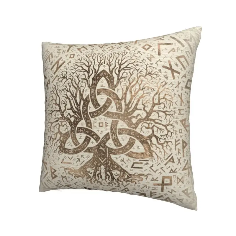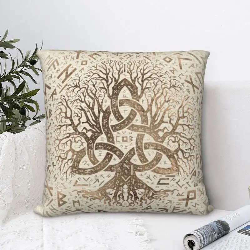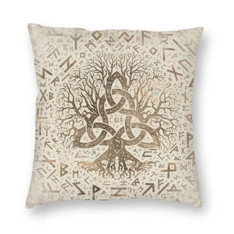 Роскошные Древо жизни с Triquetra и Futhark пастельных золото Подушка Чехол на заказ Викинг норвежский Yggdrasil Чехлы 45x45