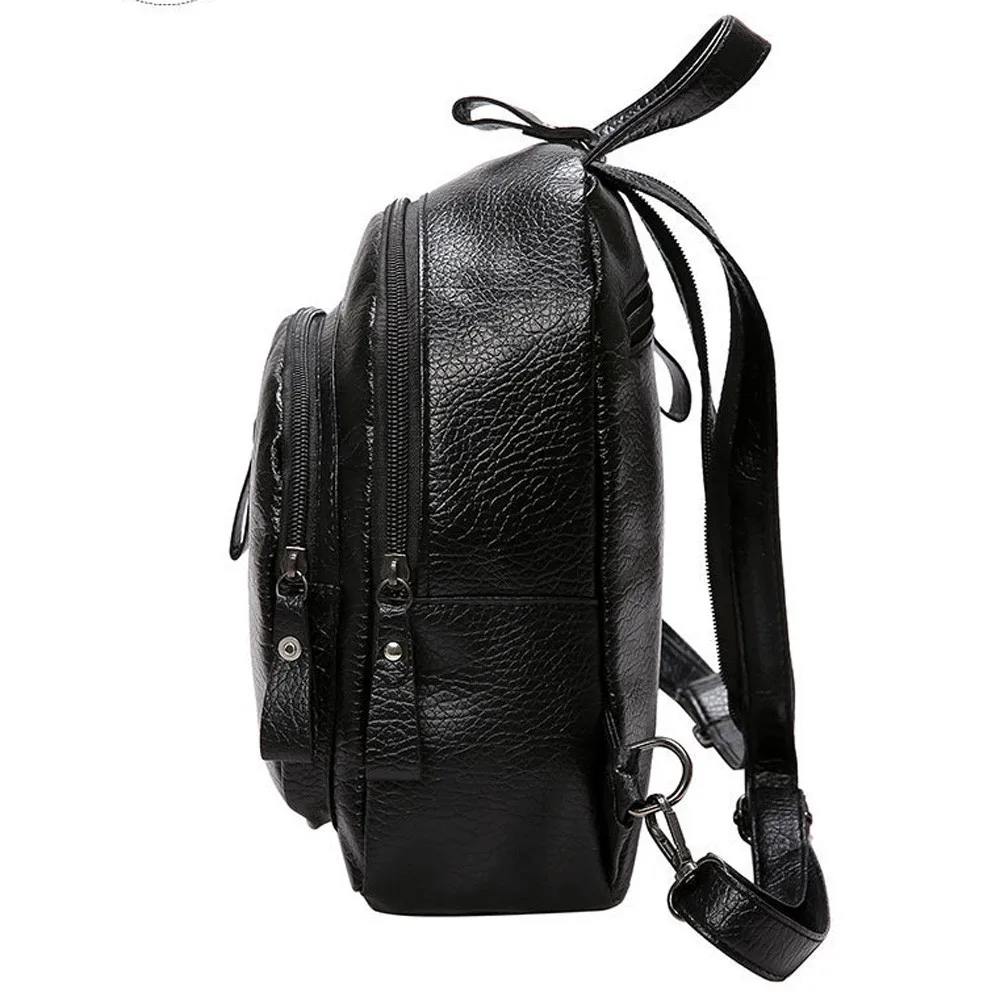 Новый женский рюкзак из искусственной кожи, дорожная сумка через плечо, Многофункциональный маленький школьный рюкзак для девочек, женский черный