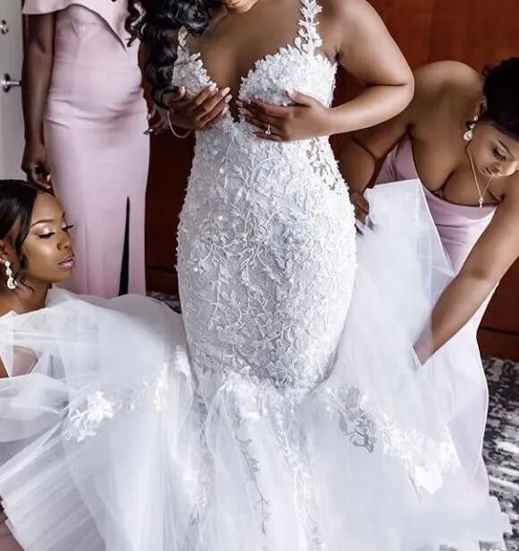 ANGELSBRIDEP Свадебные платья-русалки на бретельках, модное свадебное платье с аппликацией и шлейфом из Дубая, Африканское платье невесты