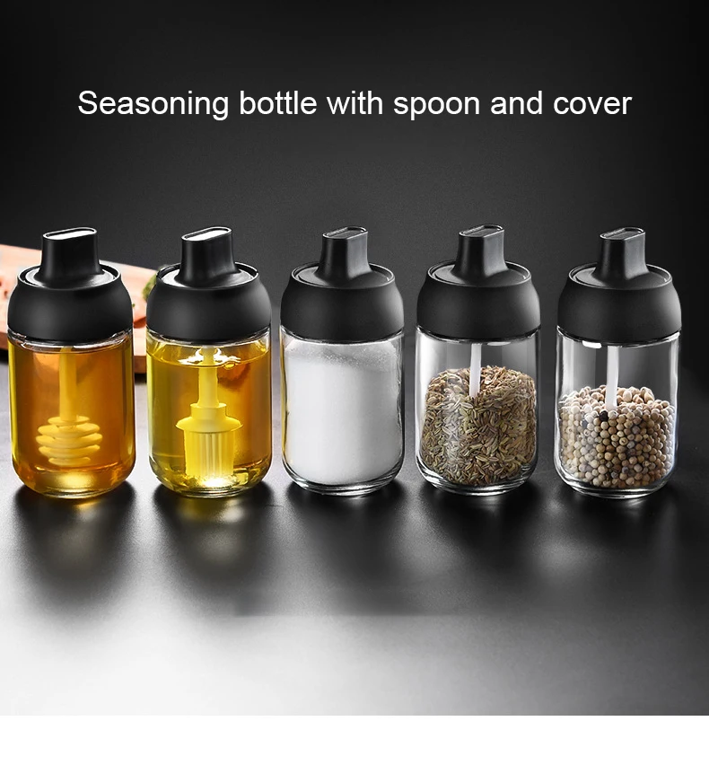 Банка для специй с ложкой крышкой приправа Организатор Стекло масло для соуса бутылка кухонный гаджет комплекты кувшиншейкер для соли и перца набор