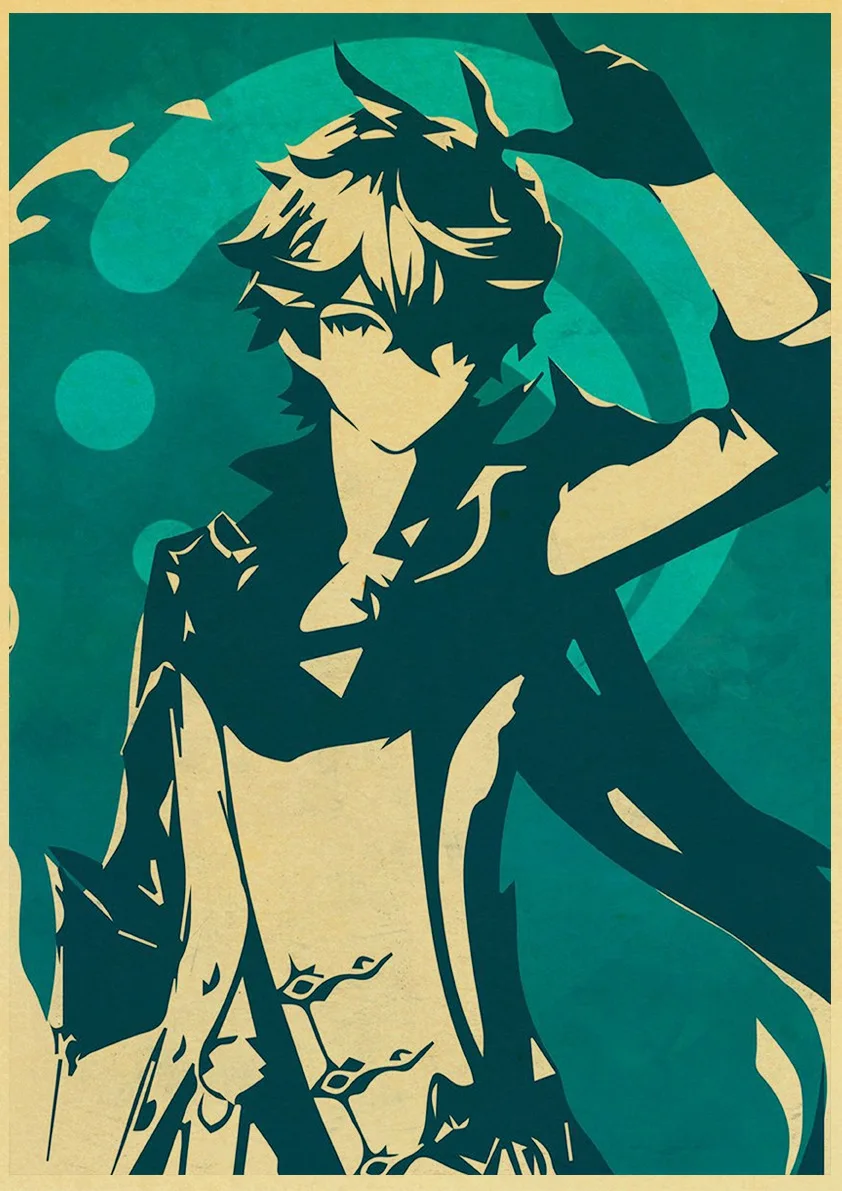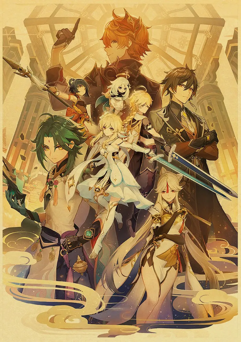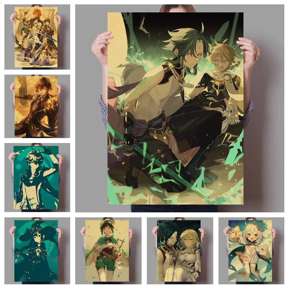 Постеры Genshin Impact из крафт-бумаги, принты для декора домашней ...