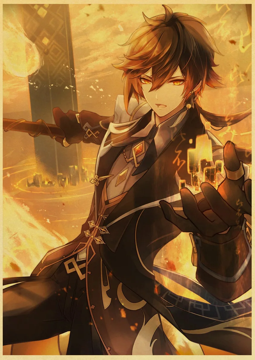 Постер с игрой Genshin Impact, HD-картина, аниме, ZhongLi, декорати...