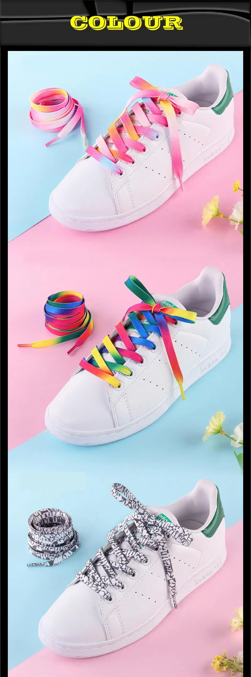 1 пара шнурков на плоской подошве; Цвет радуги; Повседневная парусиновая обувь на шнурках; Универсальная разноцветная обувь с градиентным принтом для мужчин и женщин
