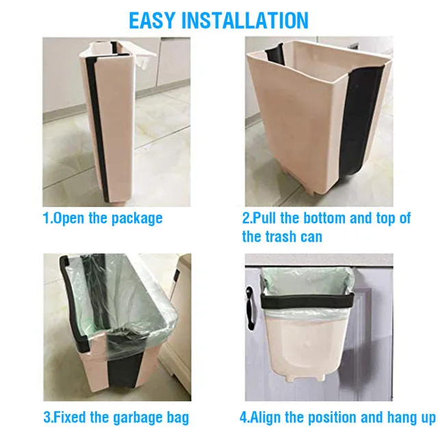 1. Его можно легко повесить на кухонную дверь или дверь шкафа, легко установить, и он хорошо хранит. Этот контейнер для мусора легко очищается и водонепроницаемый.
