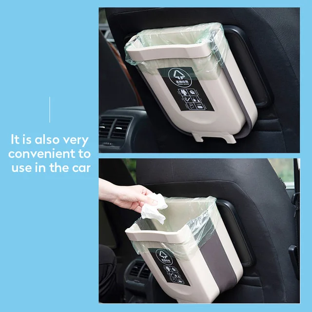 3. Это мусорное ведро не только висит, но также можно положить на землю. Он имеет складной дизайн и может уменьшить размер. Это действительно удобно и маленький, не сковывает место.