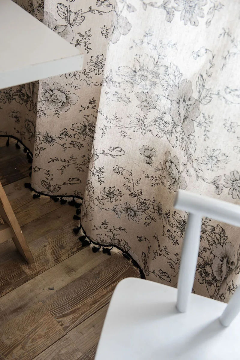 Винтажные занавески MCAO из хлопка и льна с цветочным принтом, зате...