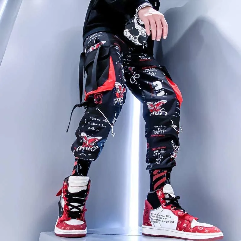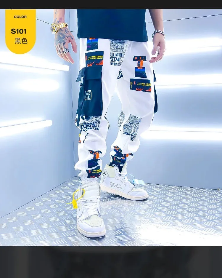 Штаны-шаровары мужские в стиле Харадзюку, с несколькими карманами