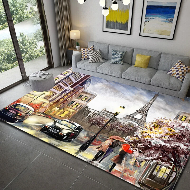 Масло картина с башней Эйфелева башня Европейский город пейзаж коврики нескользящий напольный коврик Придверные коврики домашний бегун ковер для гостиной