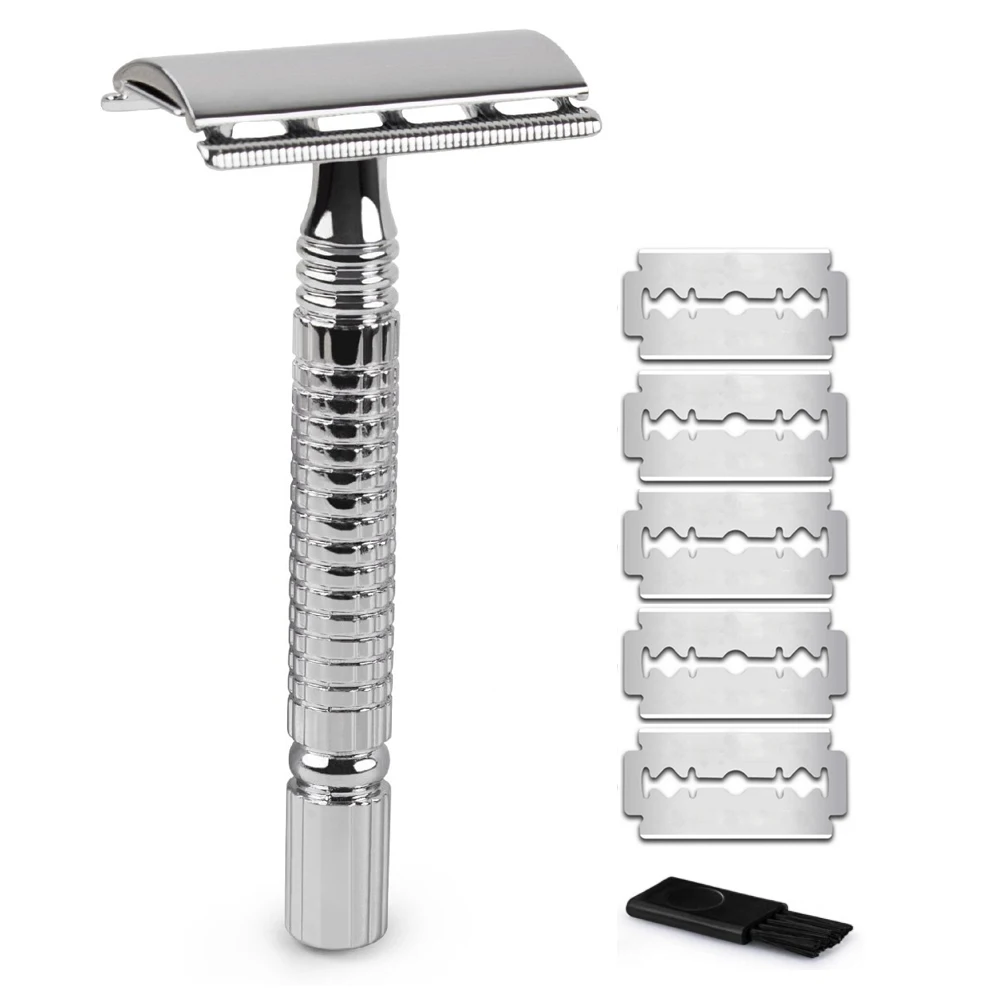 Бритва мужская с короткой ручкой, Классическая Безопасная бритва с двойными лезвиями, из нержавеющей стали, для влажного бритья, 5 лезвий
