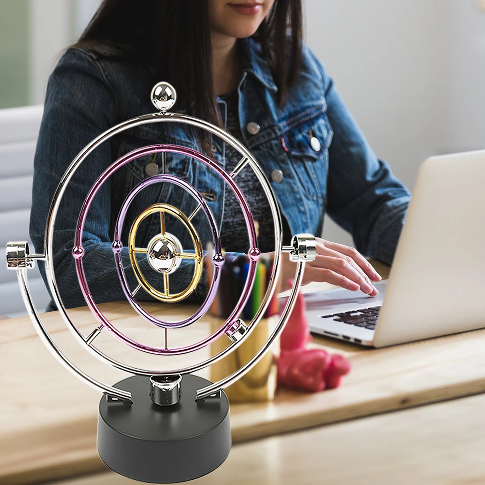Простой продукт, содержащий таинственную физику. Он преобразует энергию электрической энергии в магнитный, отталкивает магниты на кольце и постоянно производит отталкивающие силы. Так что он продолжает качать. Настольная игрушка Perpetual motion идеально подходит для оформления вашего внешнего пространства в офисе или комнате.