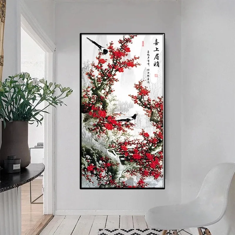 Китайский стиль простой цветок сливы холст для живописи современног...