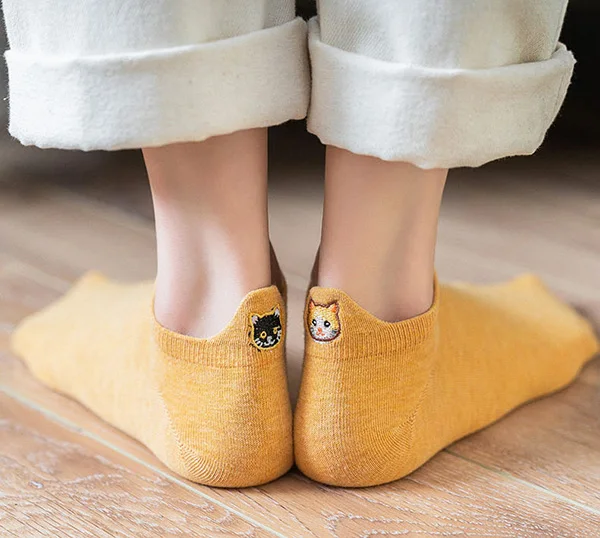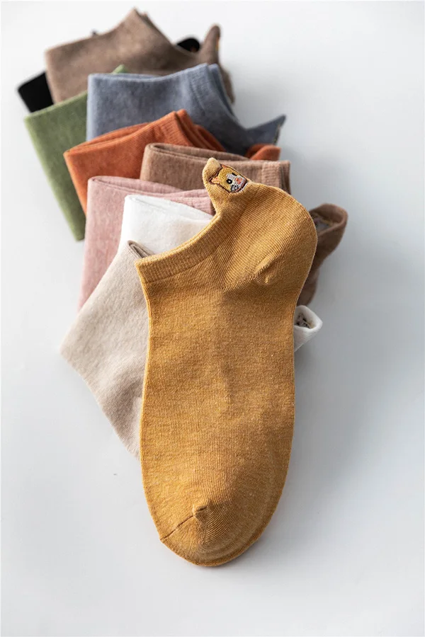10 пар, Короткие забавные женские носки с вышивкой кота из мультфильма Harajuku Happy, женские хлопковые носки с закрытым носком, сезон весна-лето