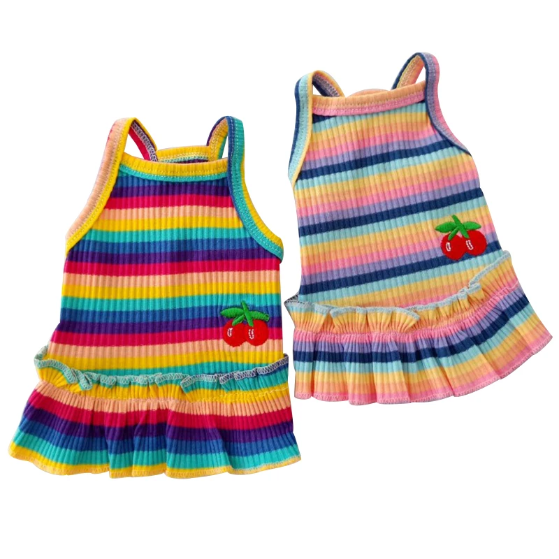 Радуги; Юбка на подтяжках; Одежда с принтом в виде собак платье супер собак Одежда Костюм для животных симпатичная летняя хлопковая Футболка Йорки с принтом для девочек, одежда с принтом в виде собак