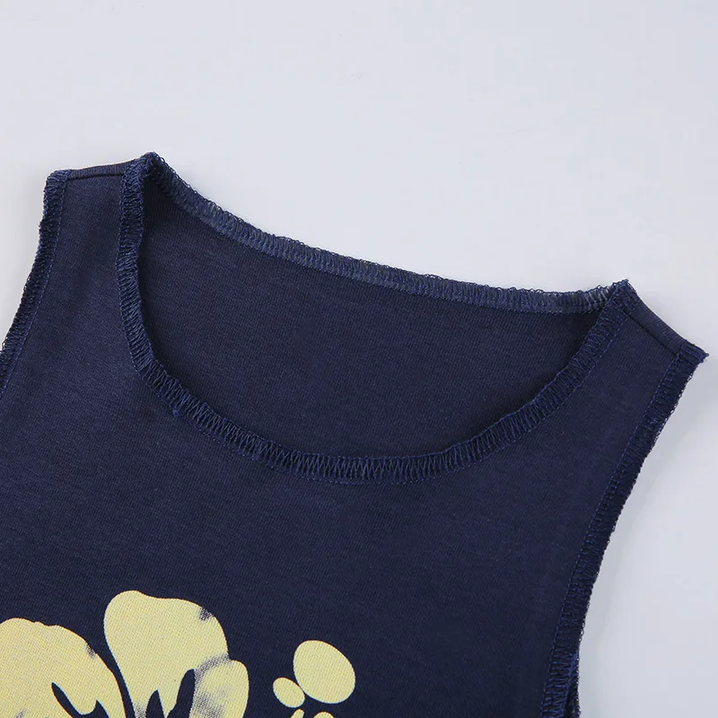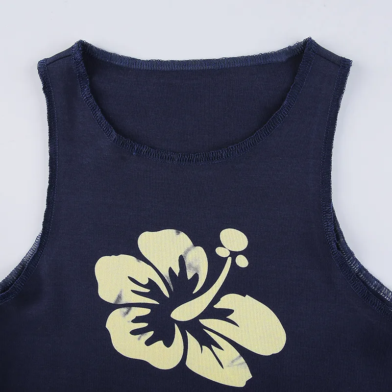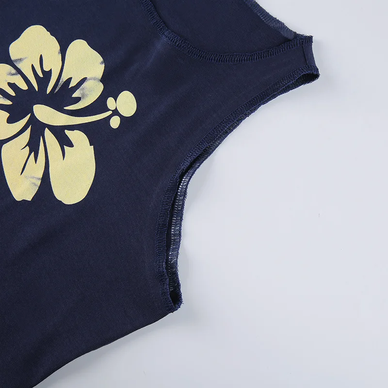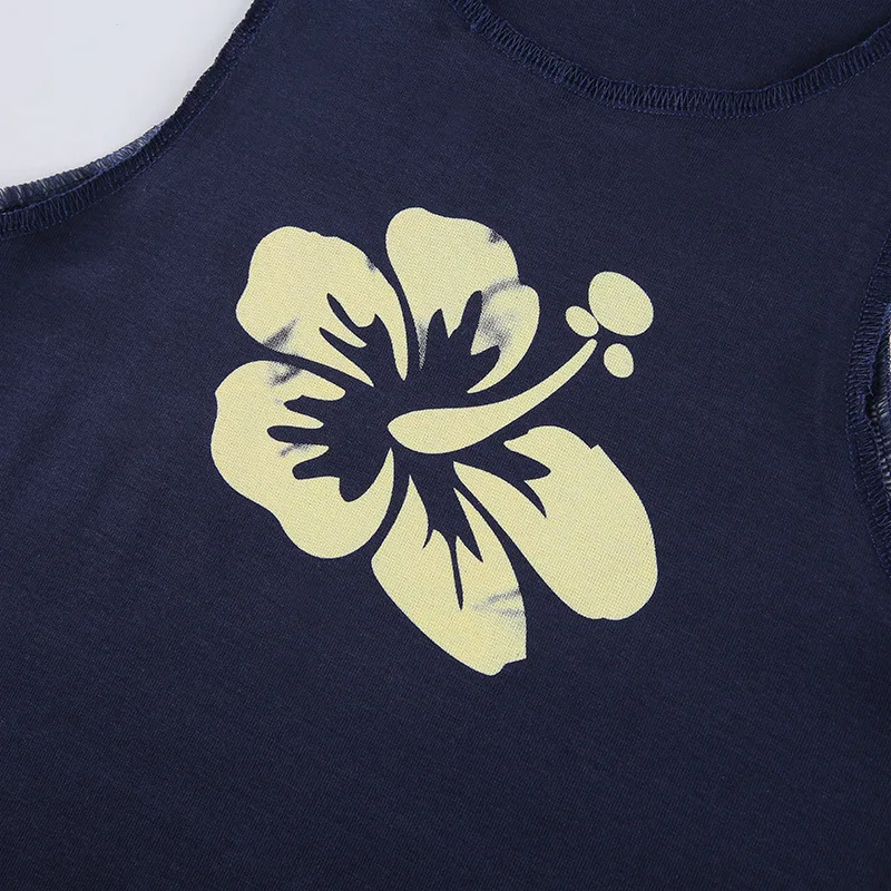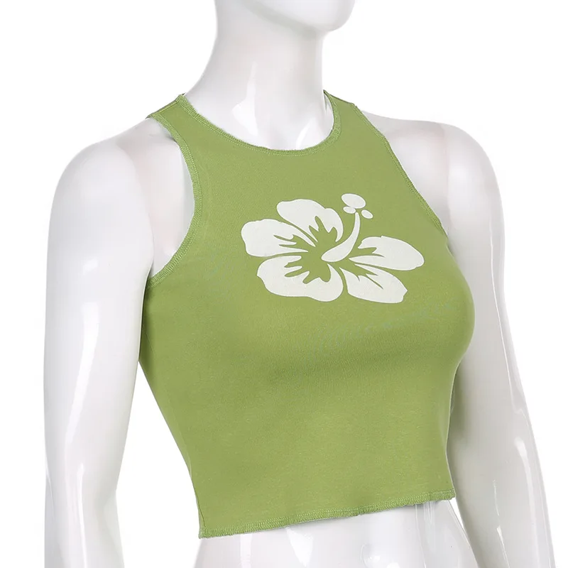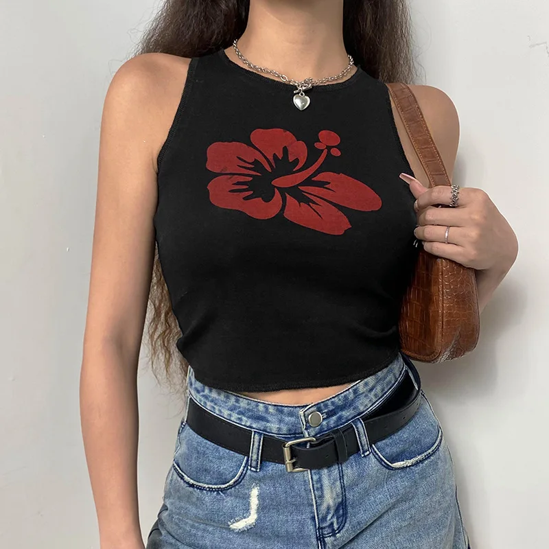 Футболка женская с цветочным принтом, повседневный винтажный Топ без швов, милый контрастный в стиле Харадзюку, с круглым вырезом, летняя одежда, Y2k