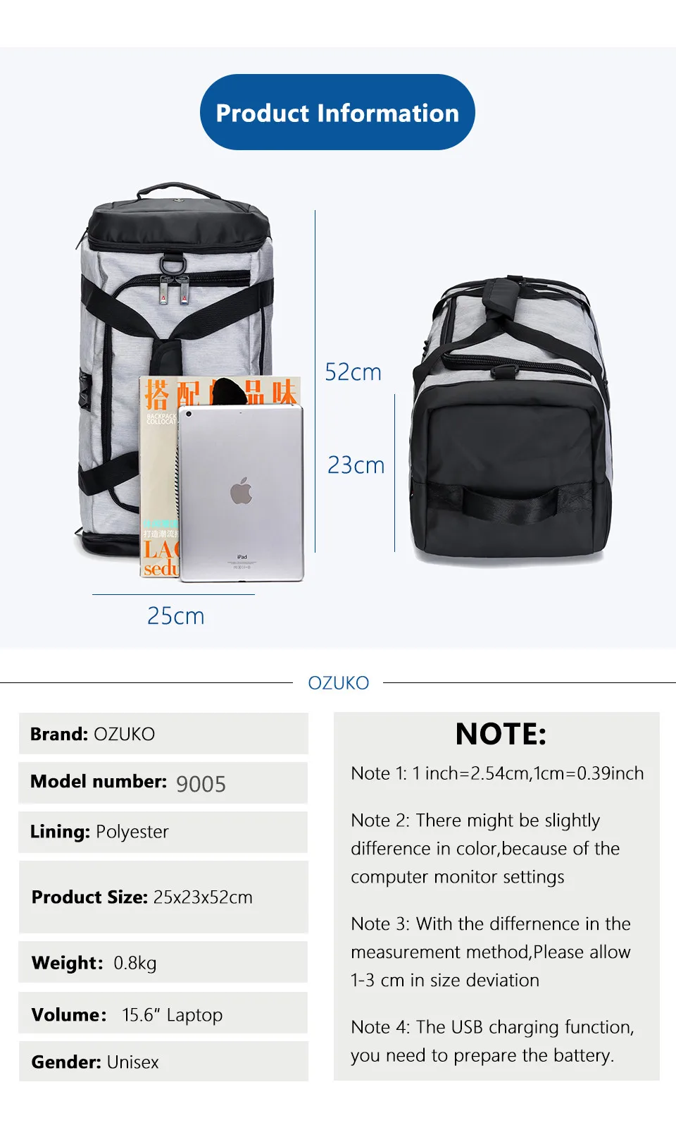 Сумка для багажа OZUKO Мужская, водонепроницаемая, из ткани Оксфорд