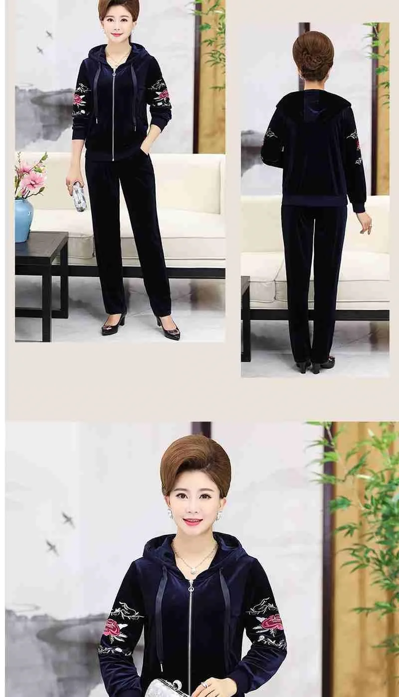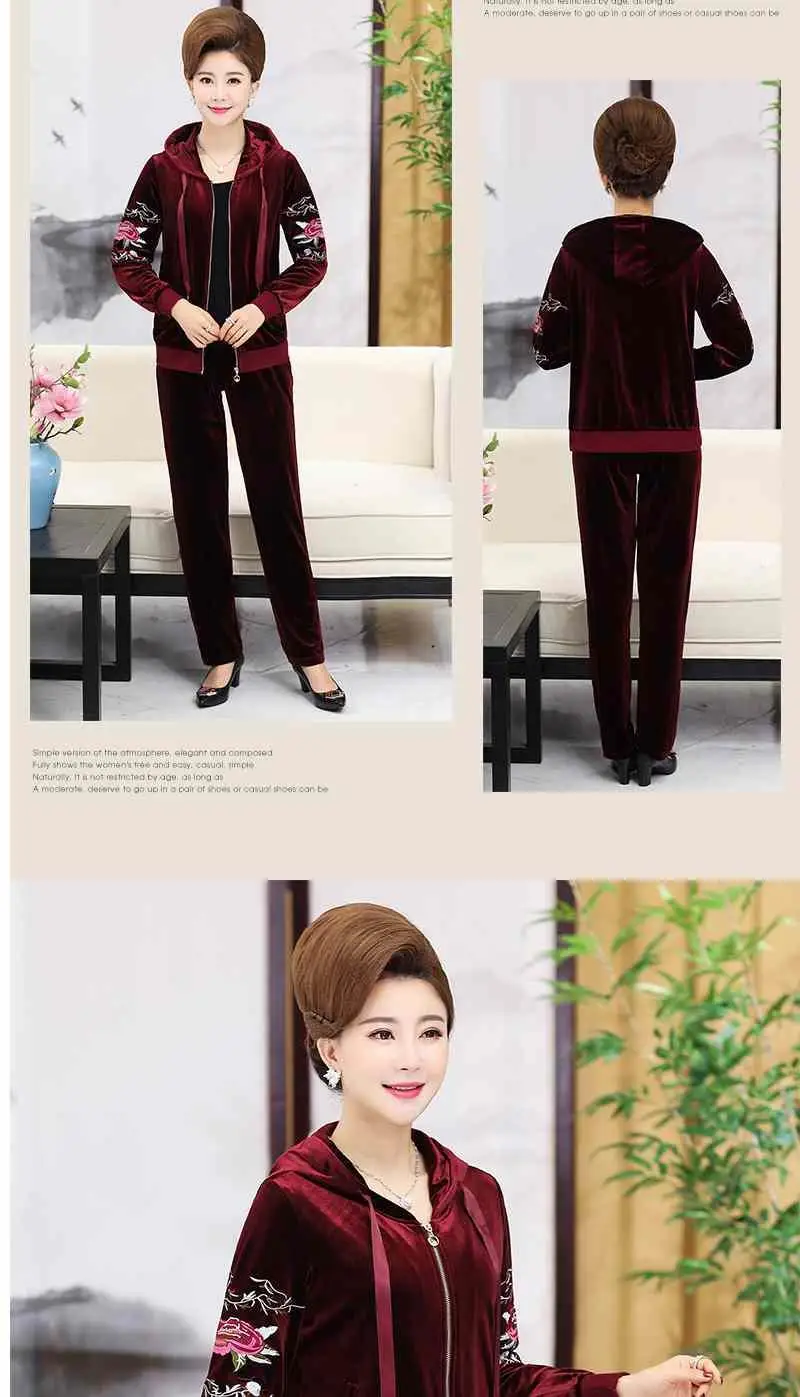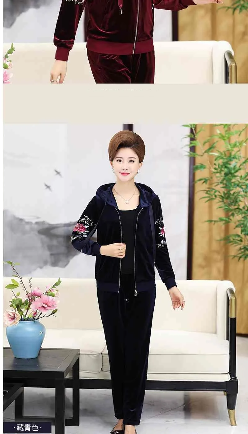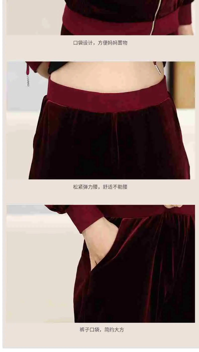Женский золотистый бархатный комплект из двух предметов, весенне-осенний свободный спортивный костюм для женщин среднего возраста, костюм с брюками, женская спортивная одежда, спортивный костюм