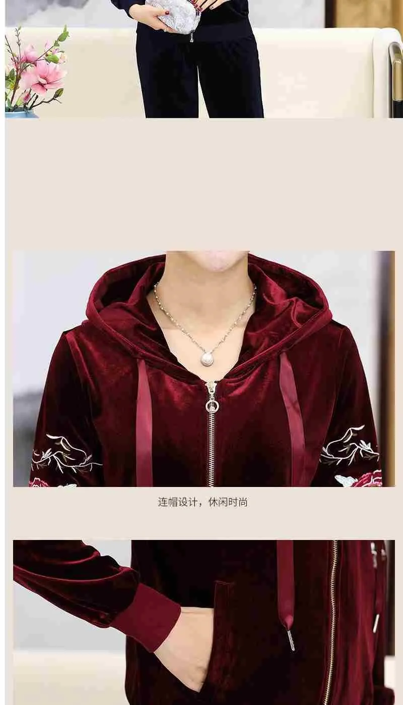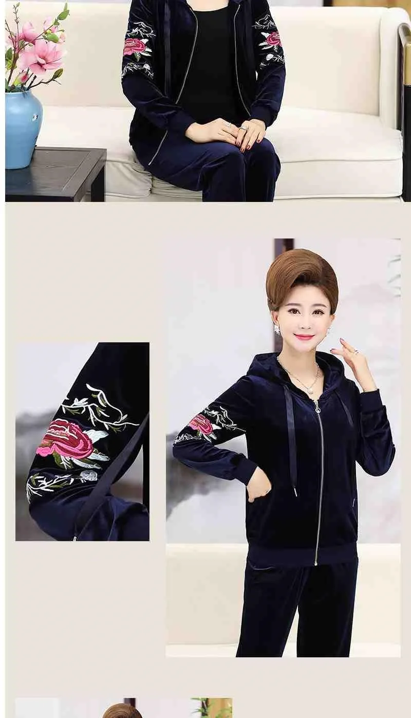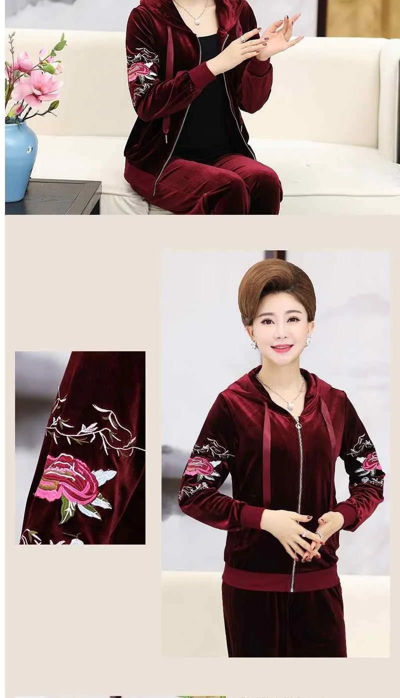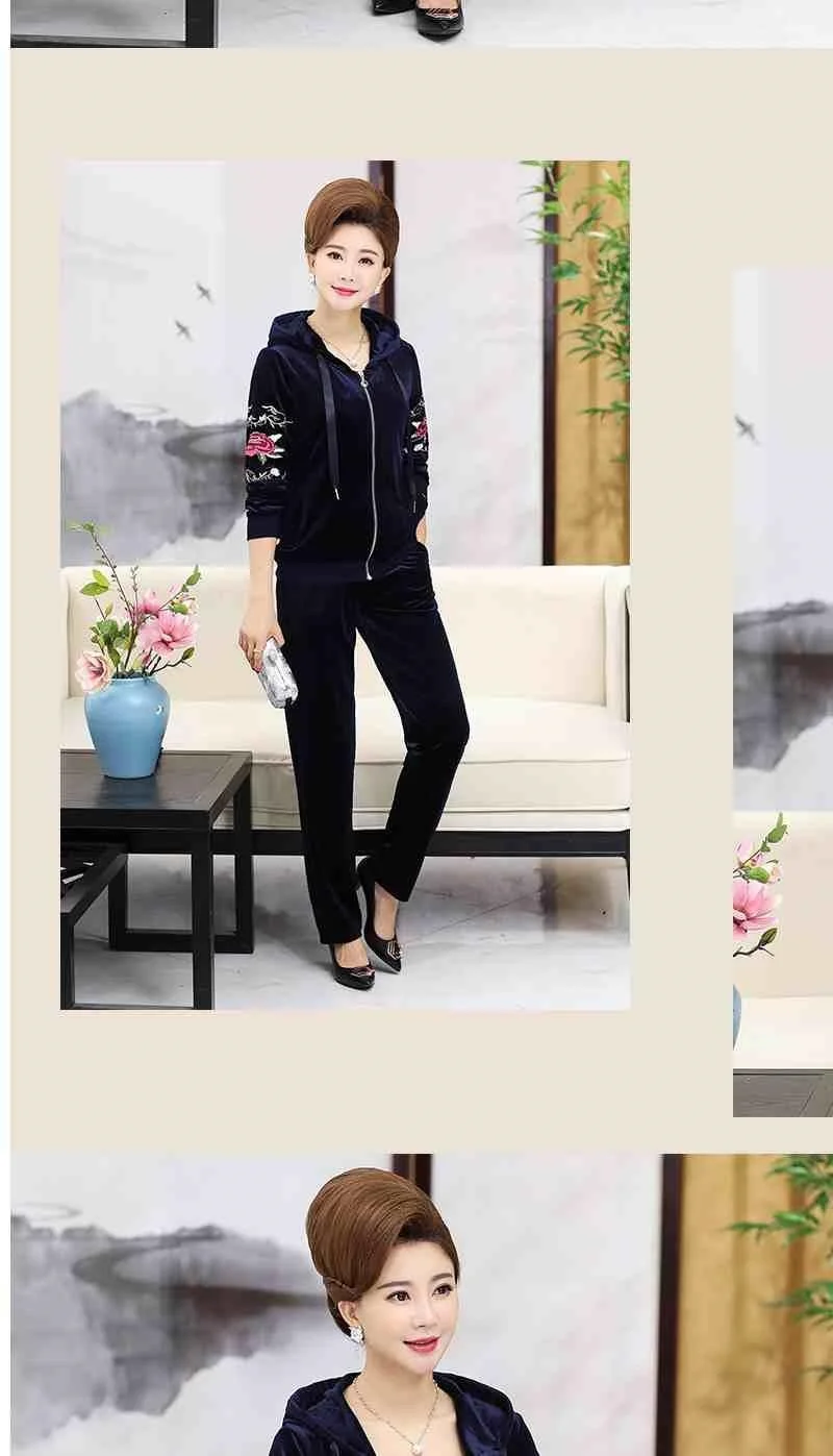 Женский золотистый бархатный комплект из двух предметов, весенне-осенний свободный спортивный костюм для женщин среднего возраста, костюм с брюками, женская спортивная одежда, спортивный костюм