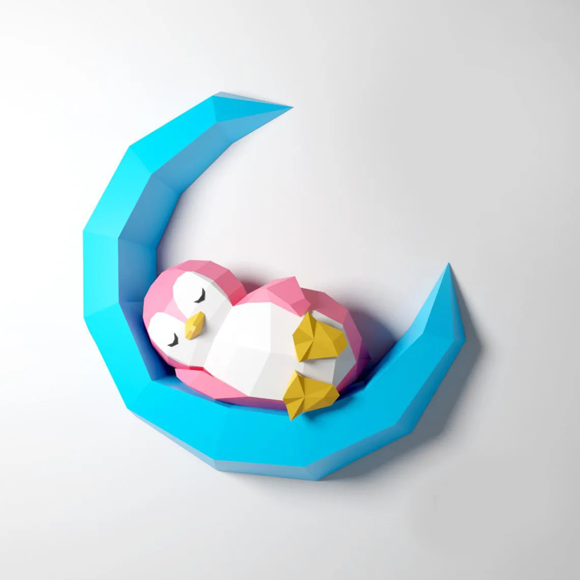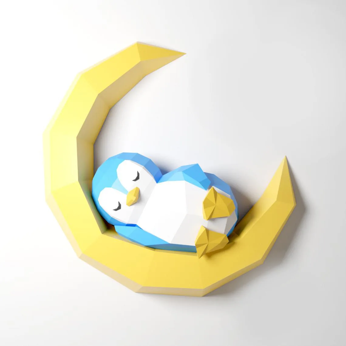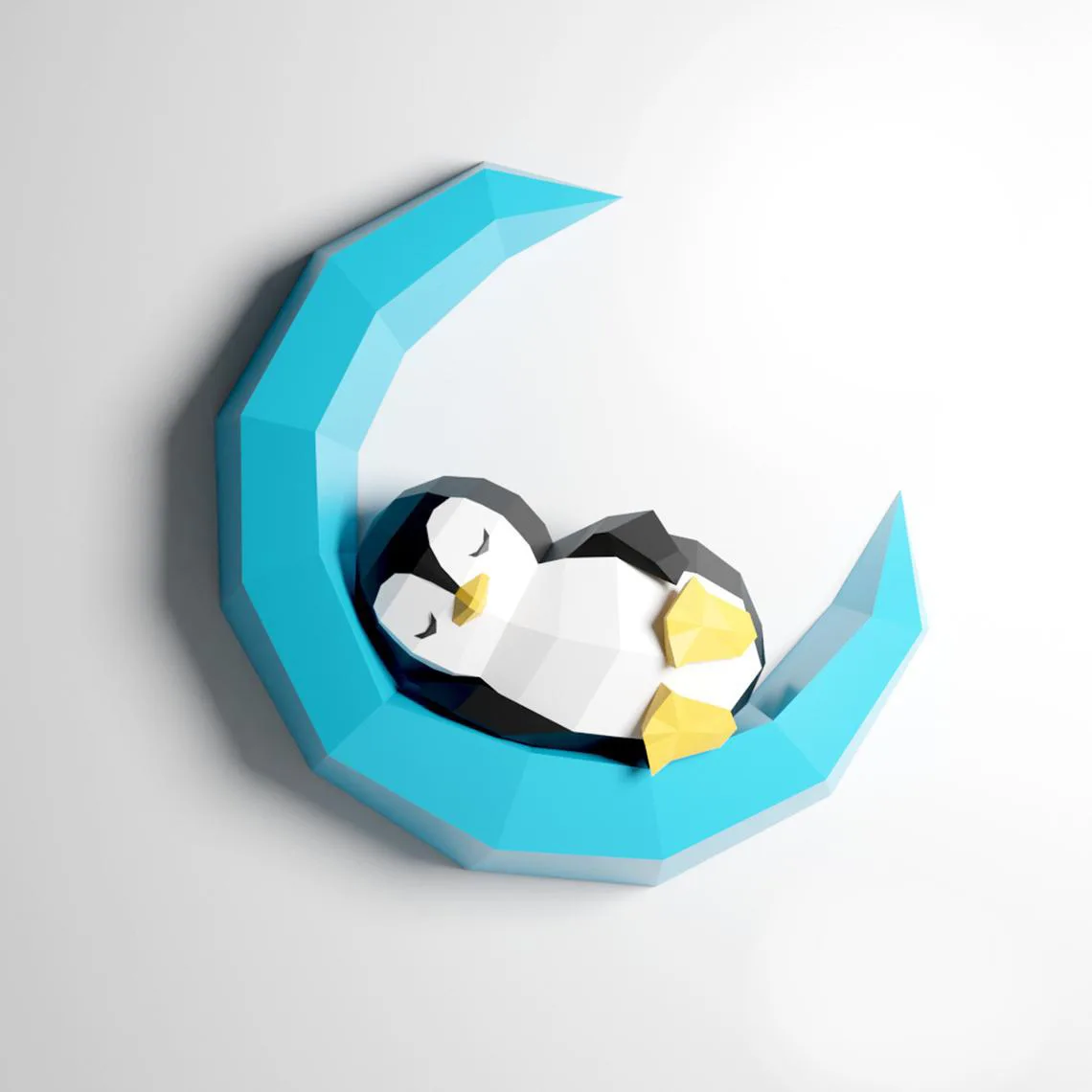 3d-модель из бумаги Пингвин на Луне, скульптура в виде животного, пингвин, бумажные изделия, рукоделие сделай сам для детей, гостиной, настенное украшение, домашний декор