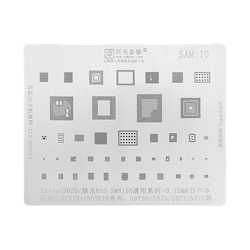 Трафарет для реболлинга Amaoe SAM10 BGA для Samsung S10 S10Plus Note 10 G9730 G975 G977 SMB8150 Exynos 9820 CPU RAM IC Chip Steel Mesh