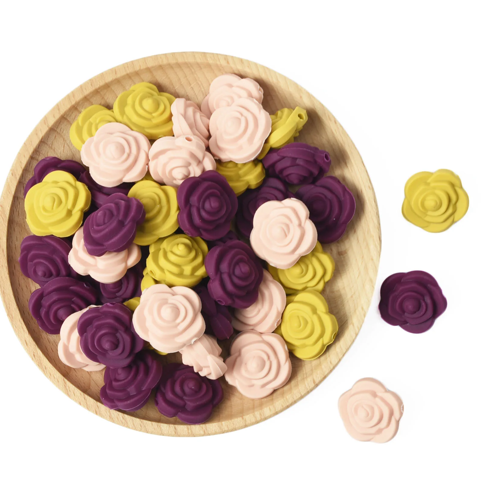 5 шт.лот 21 мм Мини розы Силиконовые Бусины пищевого класса для детей аксессуары для ожерелья сделай сам Детские бусины для прорезывания зубов безопасные игрушки без бисфенола А