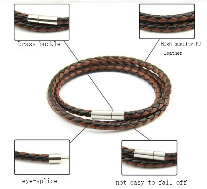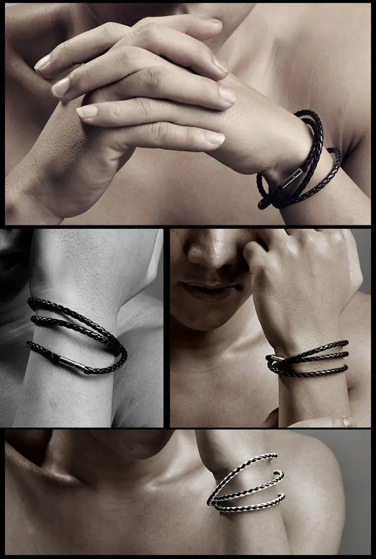 Браслет веревочный из ПУ кожи для мужчин и женщин, многослойный Пле...