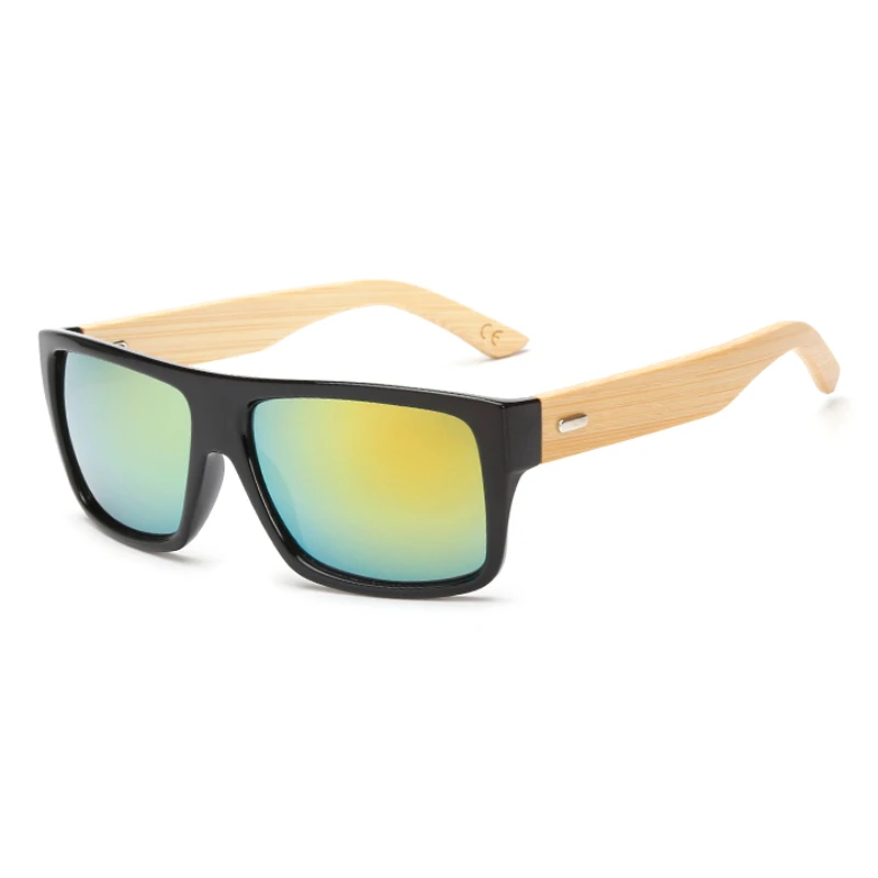 Солнцезащитные очки с бамбуковыми дужками для мужчин и женщин, Классические зеркальные солнечные очки в стиле ретро, с защитой UV400