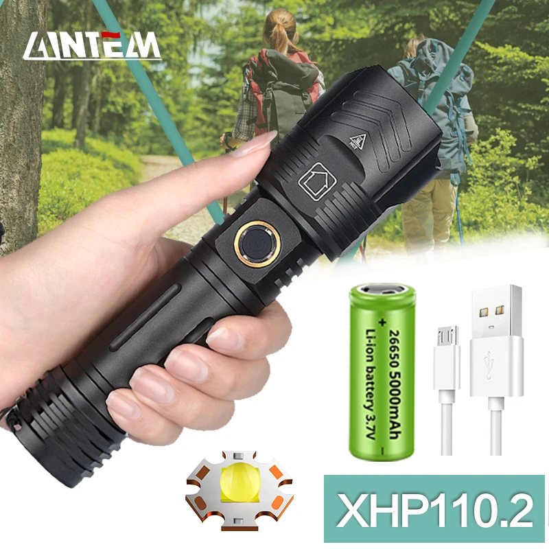 Фонафонарь XHP110.2 светодиодный, 9 ядер, 5000 мА ч, водонепроницаемый, с зарядкой от USB, масштабируемый