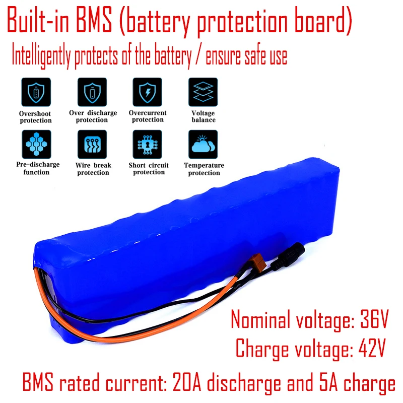 Аккумулятор для электровелосипеда 10S3P, 36 В, 10 А ч, литий-ионный аккумулятор 18650 500 Вт, высокая мощность и емкость 42 в, для мотоцикла, скутера с зарядным устройством 2 А