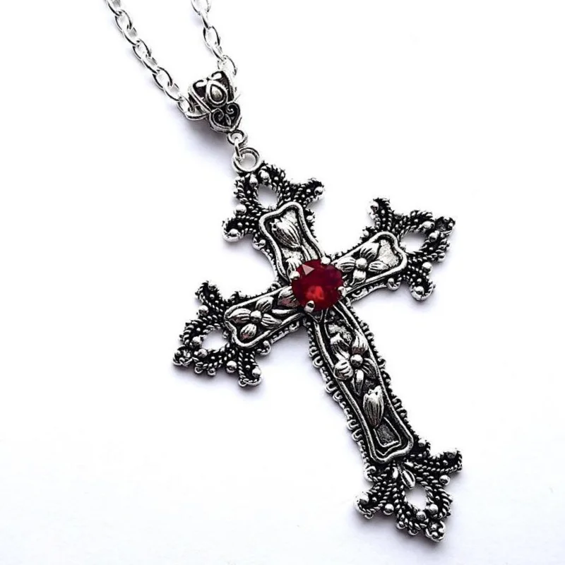 Женский кулон в готическом стиле Goth, большой кулон в виде креста с бусинами, Ювелирное Украшение в стиле панк на Хэллоуин, массивный подарок для женщин