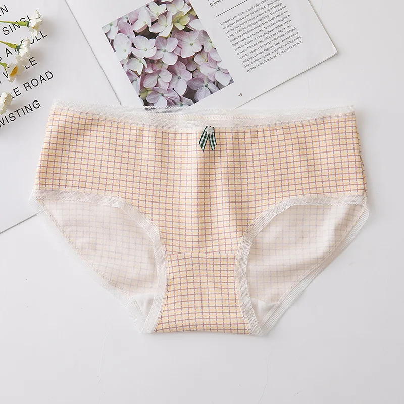 Трусики женские, 6 шт.лот, кружевные, дышащие, в клетку, 2020
